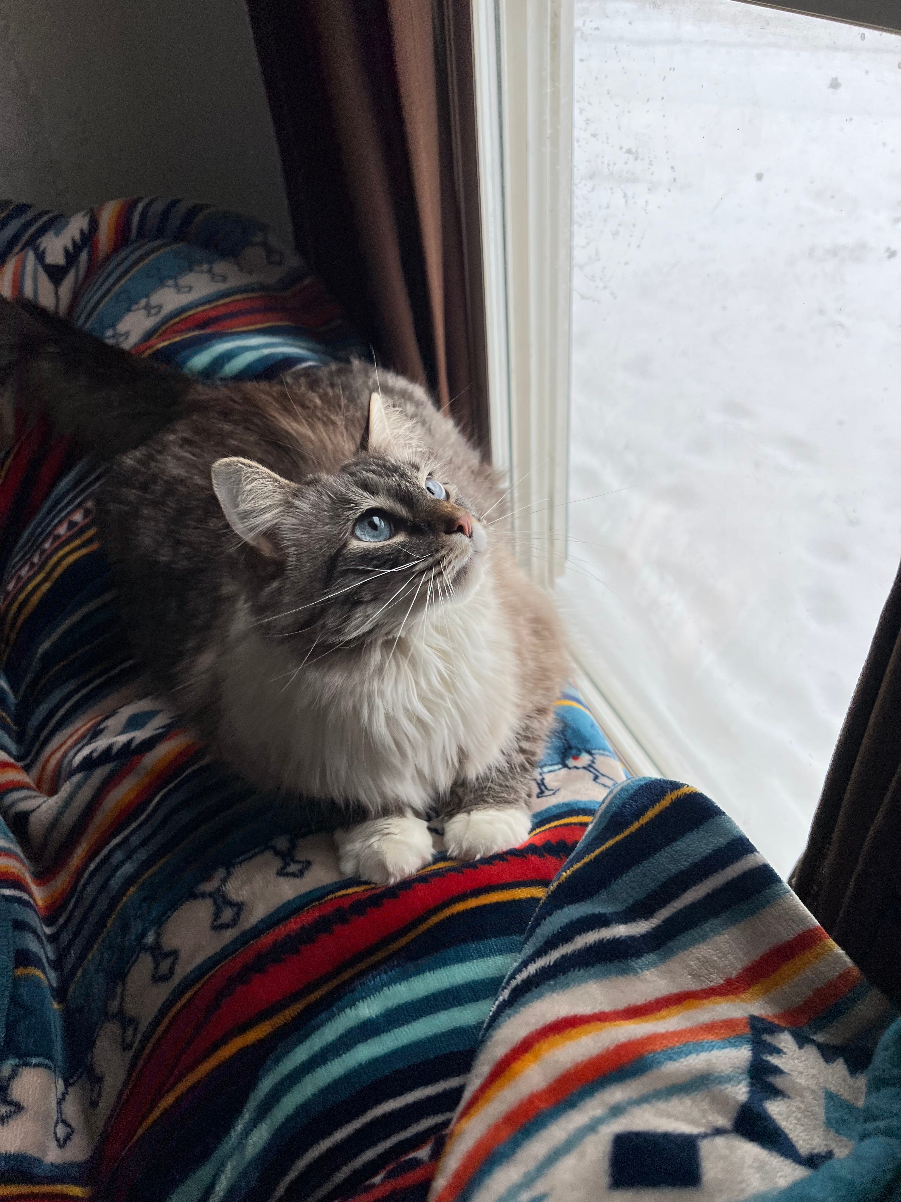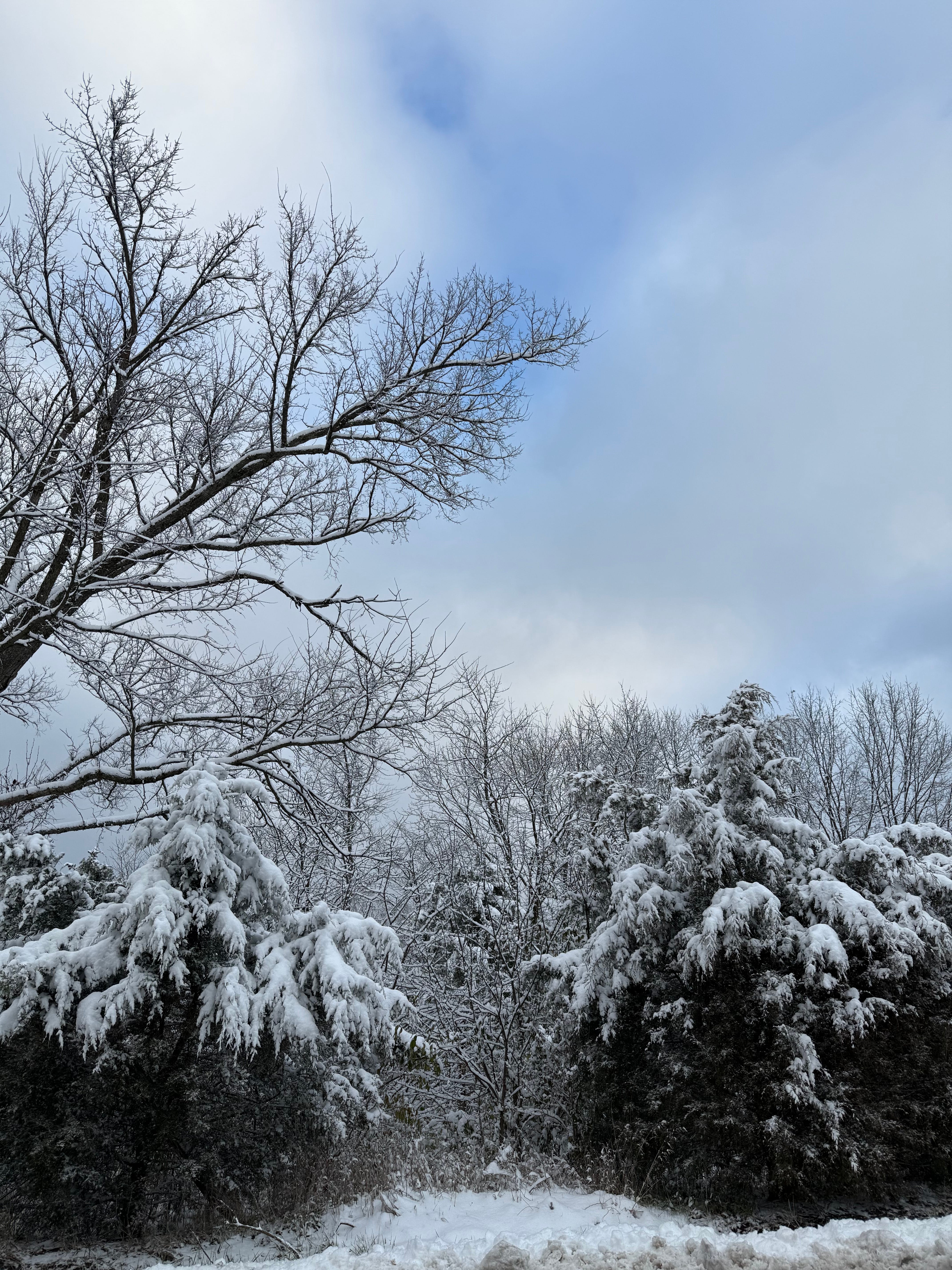 But for now, the snow! Have you seen the snow? I walked my dog out in it before everyone else this morning. The sun had barely risen. The sky was rose-gold and close enough to touch. Towhees and cardinals flickered in the underbrush. Trees, arms laden with white, stood unmoving the way you do when you discover a delicate thing with wings has chosen you for a momentary perch—the stillness that comes when you recognize the sacred.